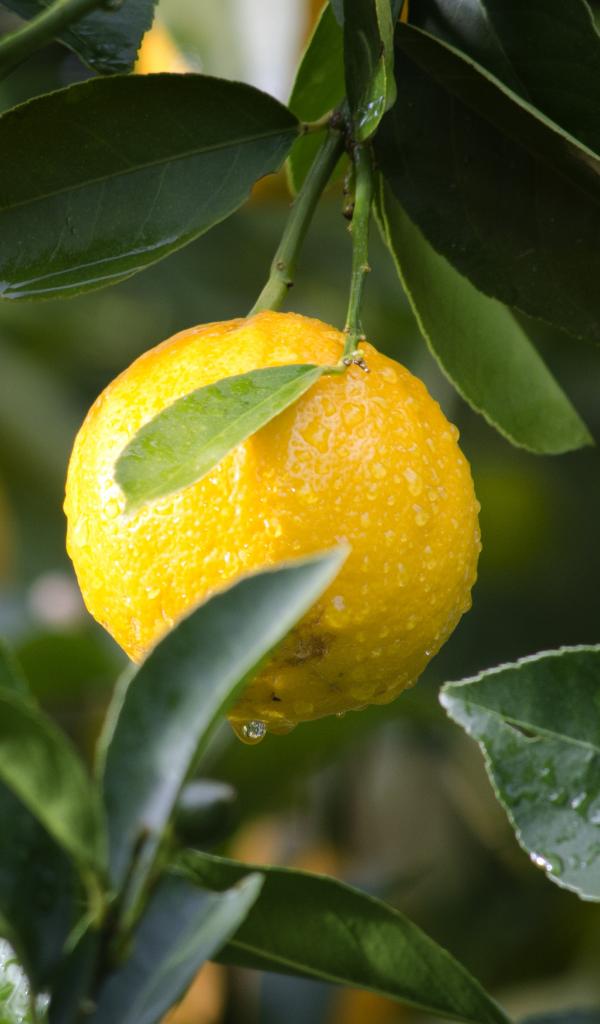 Обои Мокрый мандарин на ветке в зеленых листьях