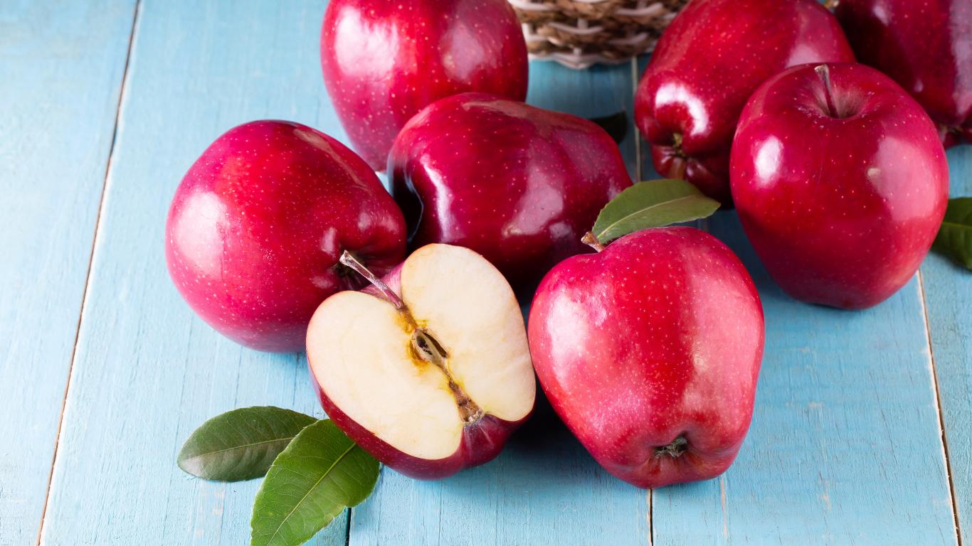 Обои Красивые спелые красные яблоки на столе