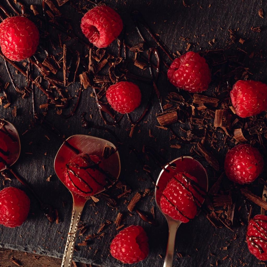 Обои Малина на столе с шоколадной стружкой