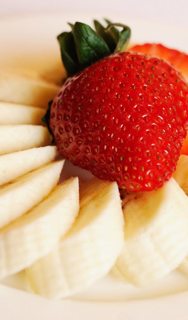 Обои Бананы кусочками с ягодой клубники