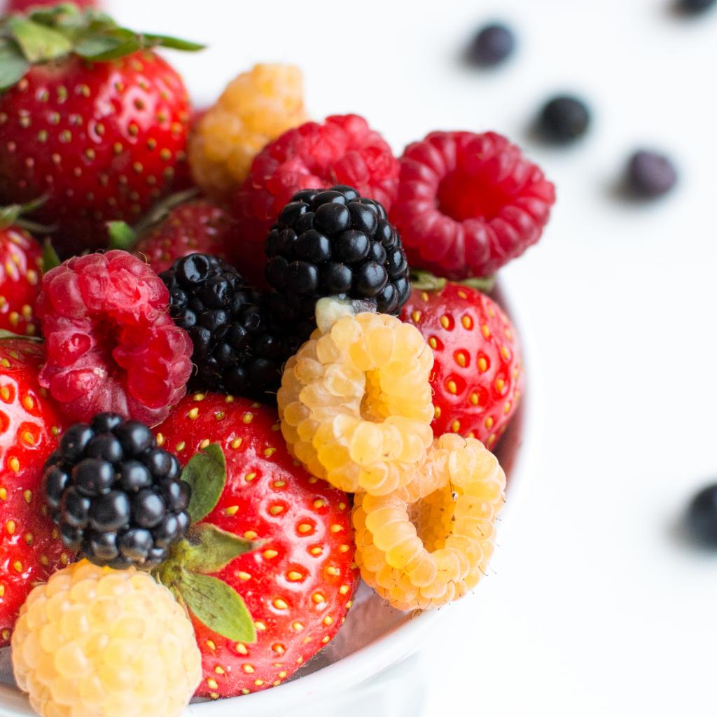 Обои Ягоды малины, клубники, ежевики и черники крупным планом