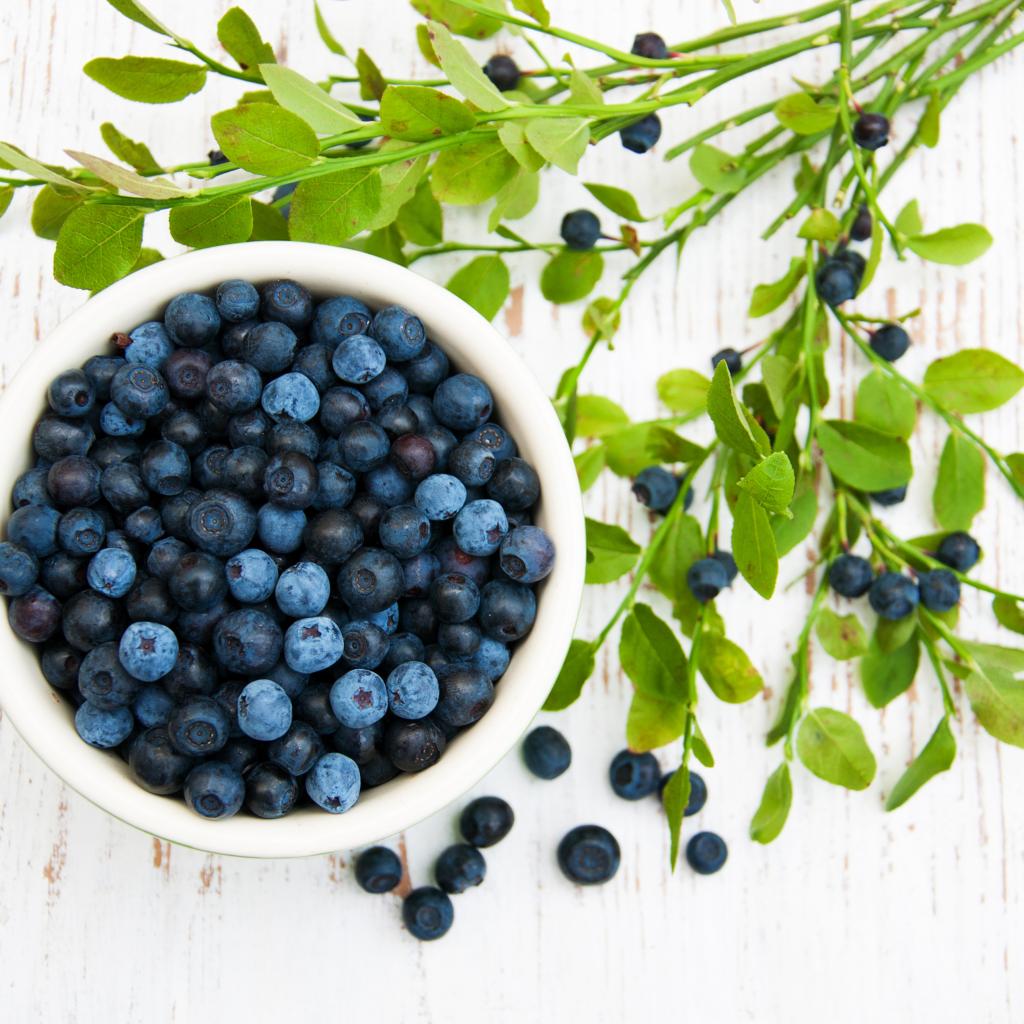 Обои Свежие ягоды черники на столе с ветками