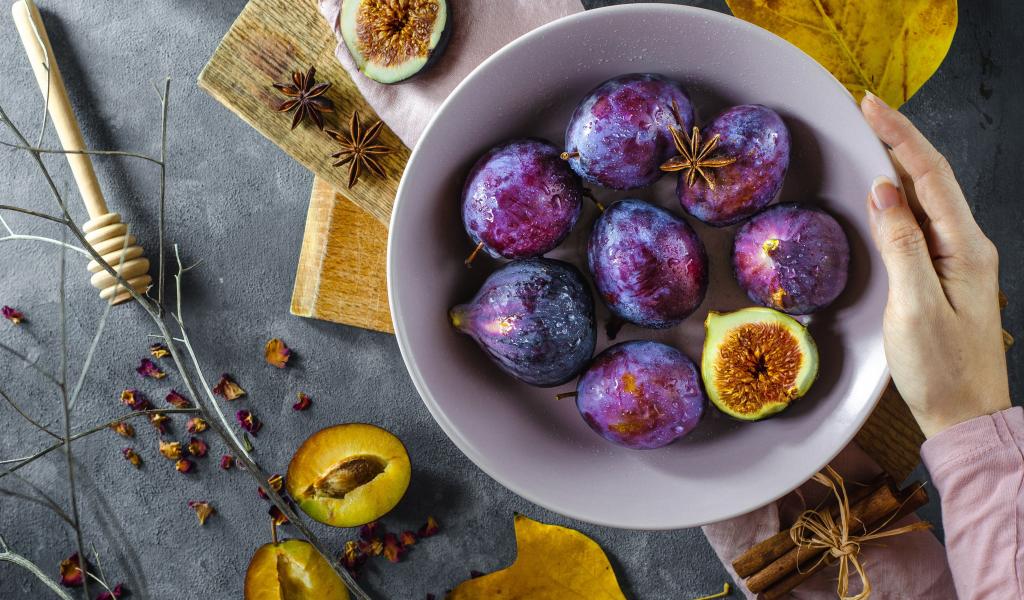 » Обои Инжир в миске с синими сливами