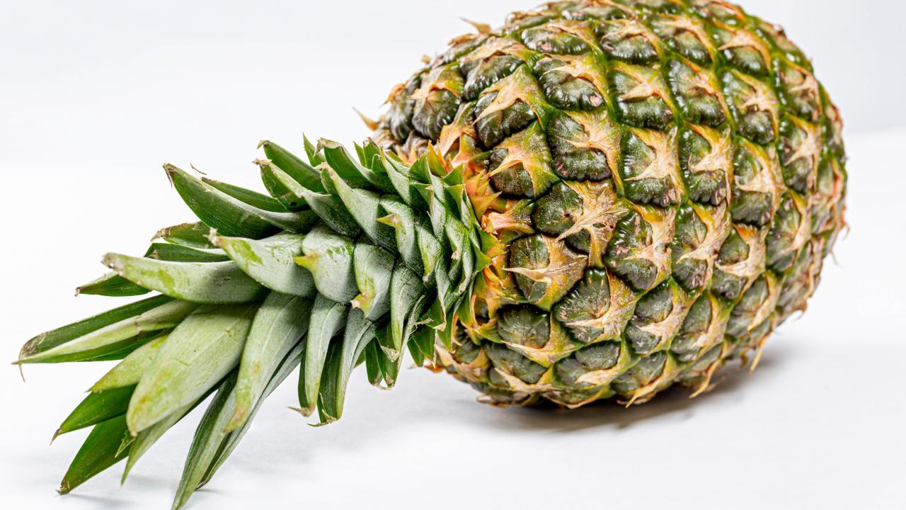Обои Большой спелый ананас на белом фоне