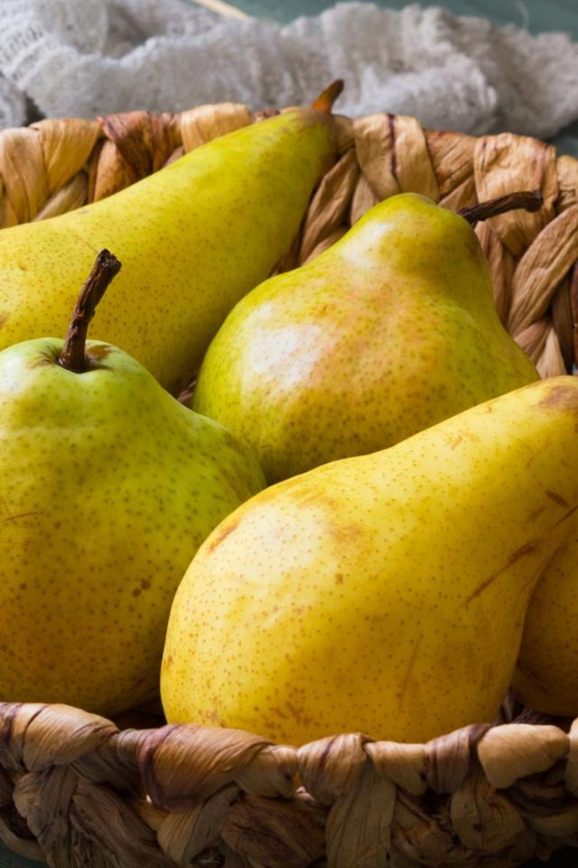 Обои Спелые груши лежат в корзине на столе
