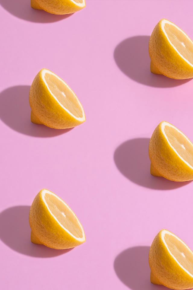 Обои Половинки лимона на розовом фоне