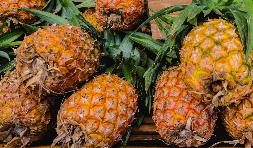 Обои Много больших спелых ананасов на столе