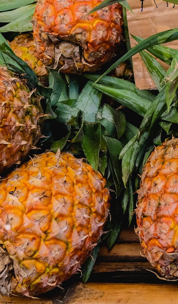 Обои Много больших спелых ананасов на столе