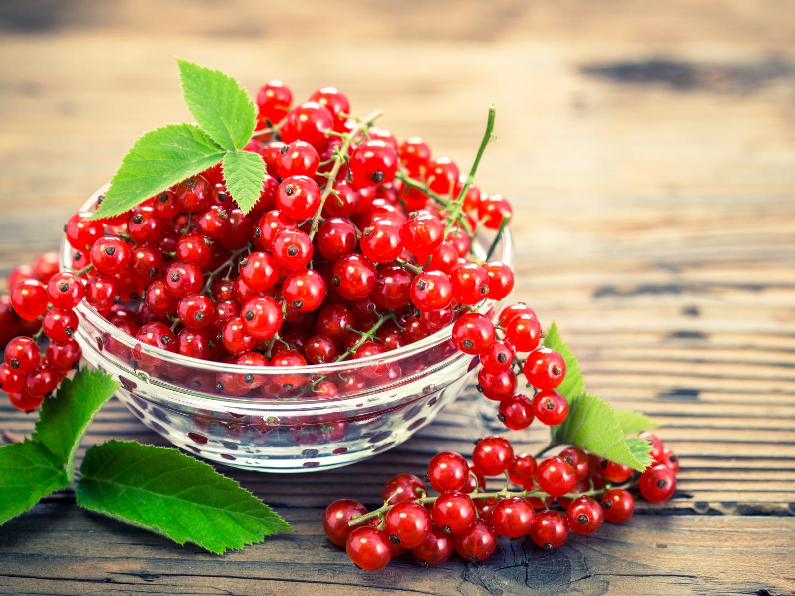 Обои Красная смородина в стеклянной миске на столе