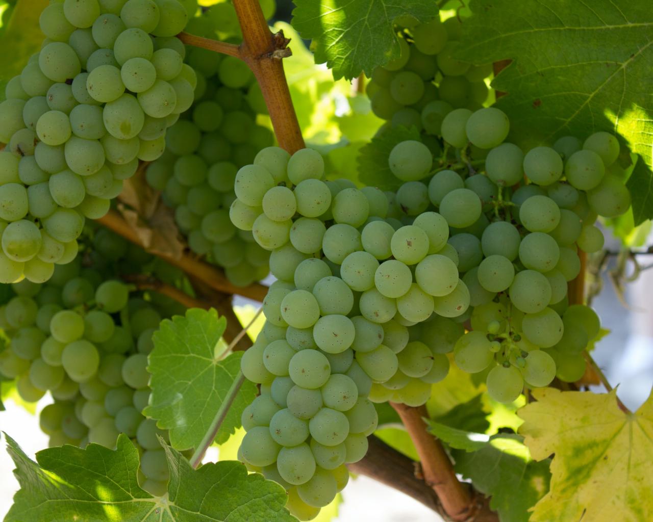 Обои Спелый белый виноград на гроздьях