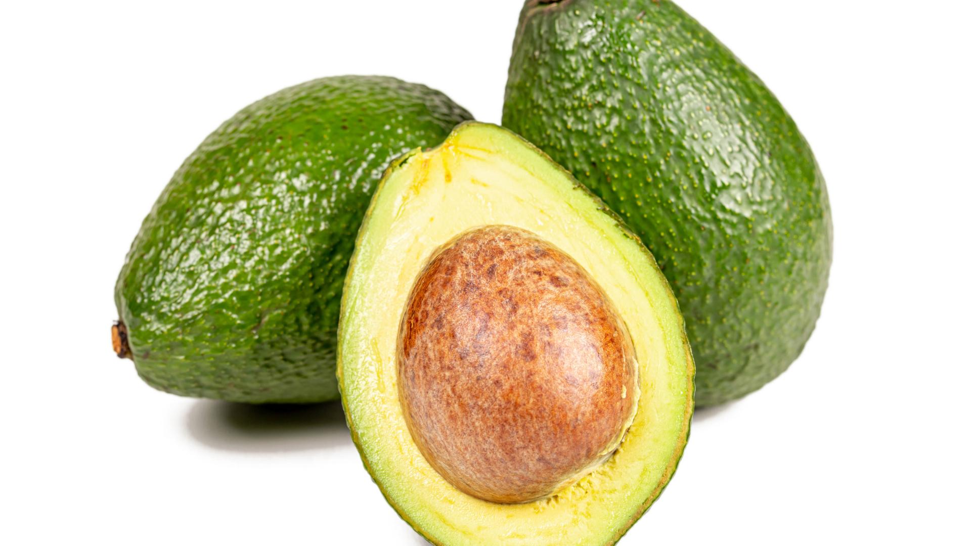 Обои Зеленые плоды авокадо на белом фоне