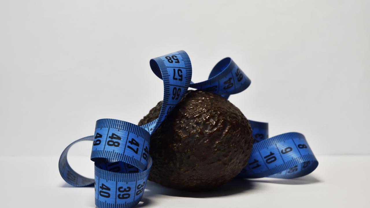 Обои Авокадо с сантиметром на сером фоне
