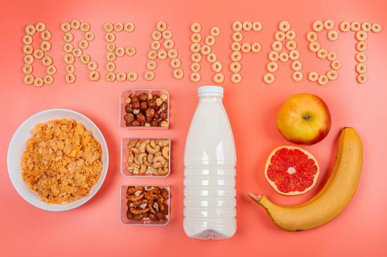 Обои Хлопья, орехи, молоко и бананы на завтрак