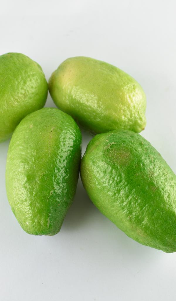 Обои Четыре зеленых лимона на белом фоне