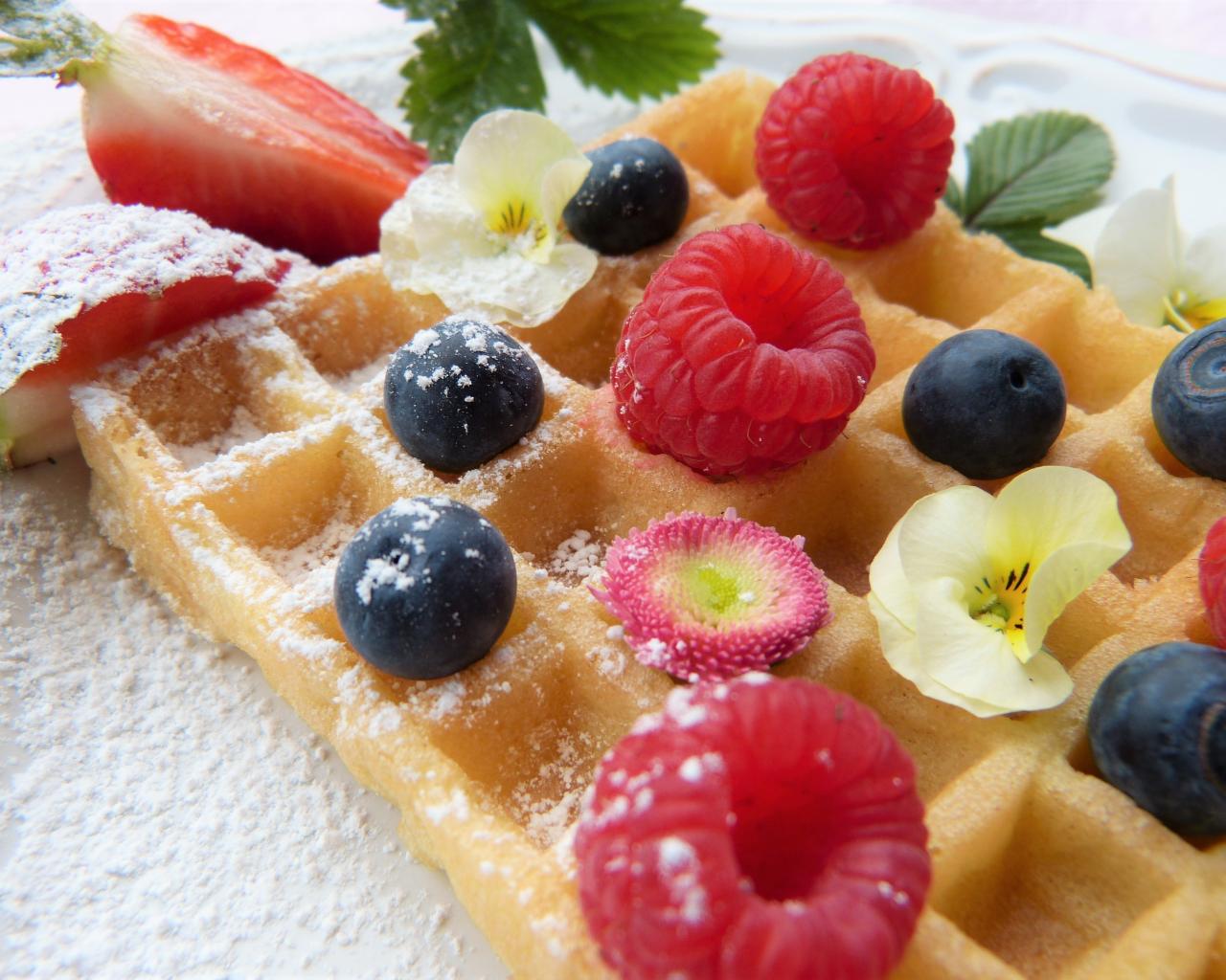 Обои Вафля с фруктами и сахарной пудрой