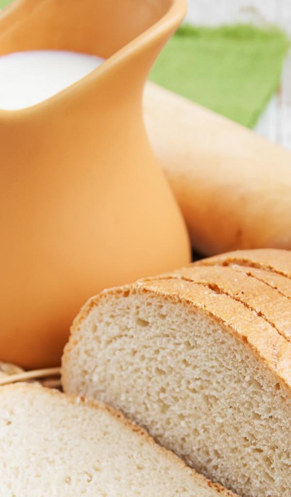 Обои Белый нарезанный батон на столе с молоком