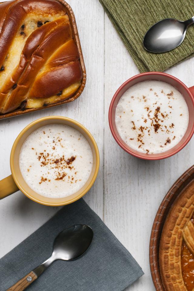 Обои Свежая выпечка и две кружки молока на столе