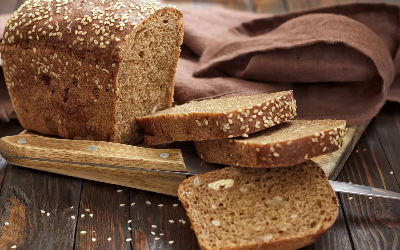 Обои Буханка хлеба нарезанная кусочками на столе с ножом