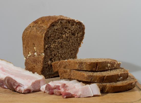 Обои Черный хлеб на столе с нарезанным салом