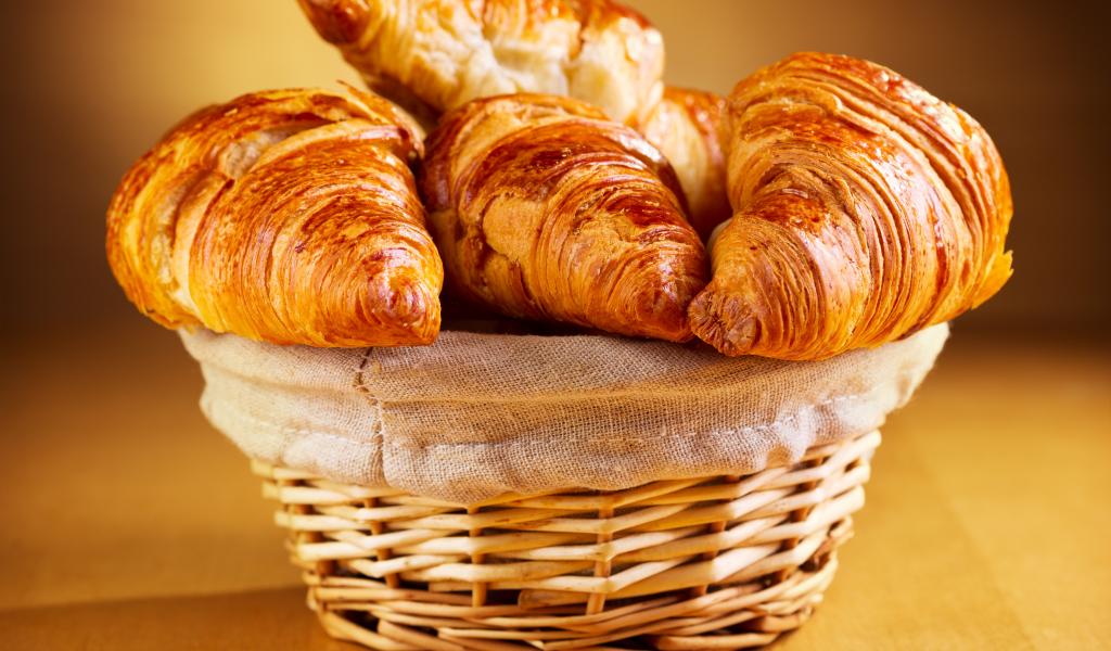 » Обои Запеченные румяные круассаны на столе в корзинке