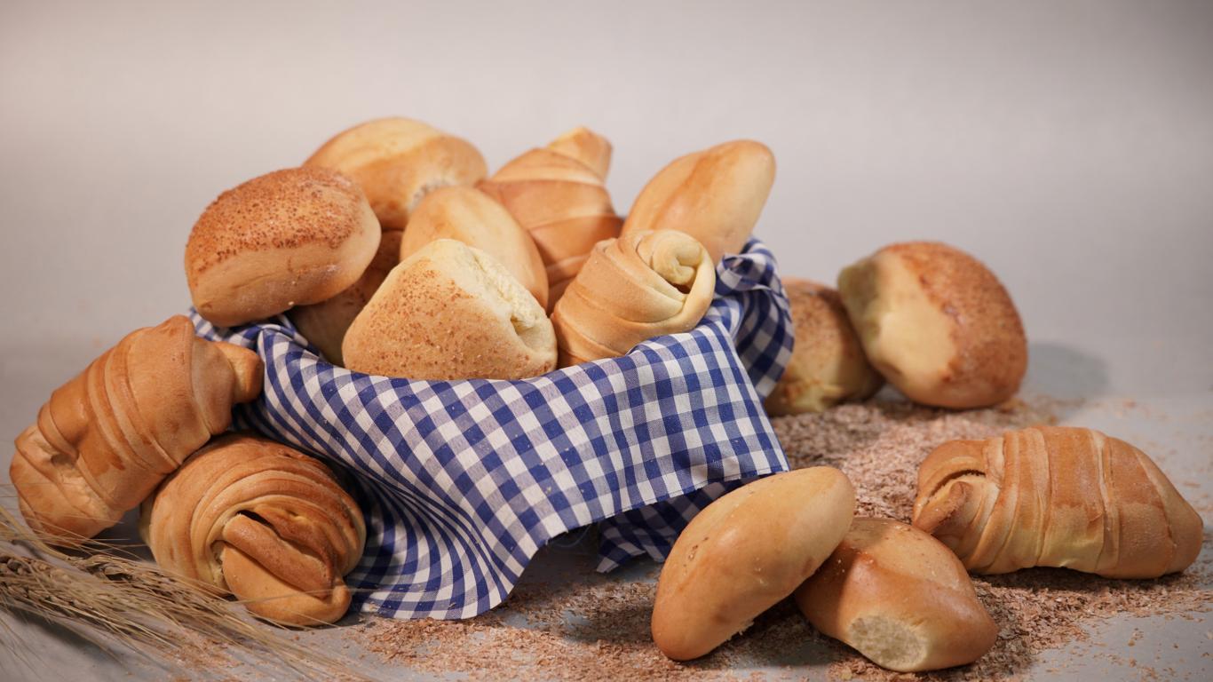 Обои Вкусные сдобные булочки на сером фоне