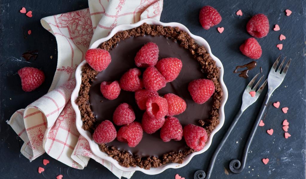 Обои Шоколадный торт со свежей малиной