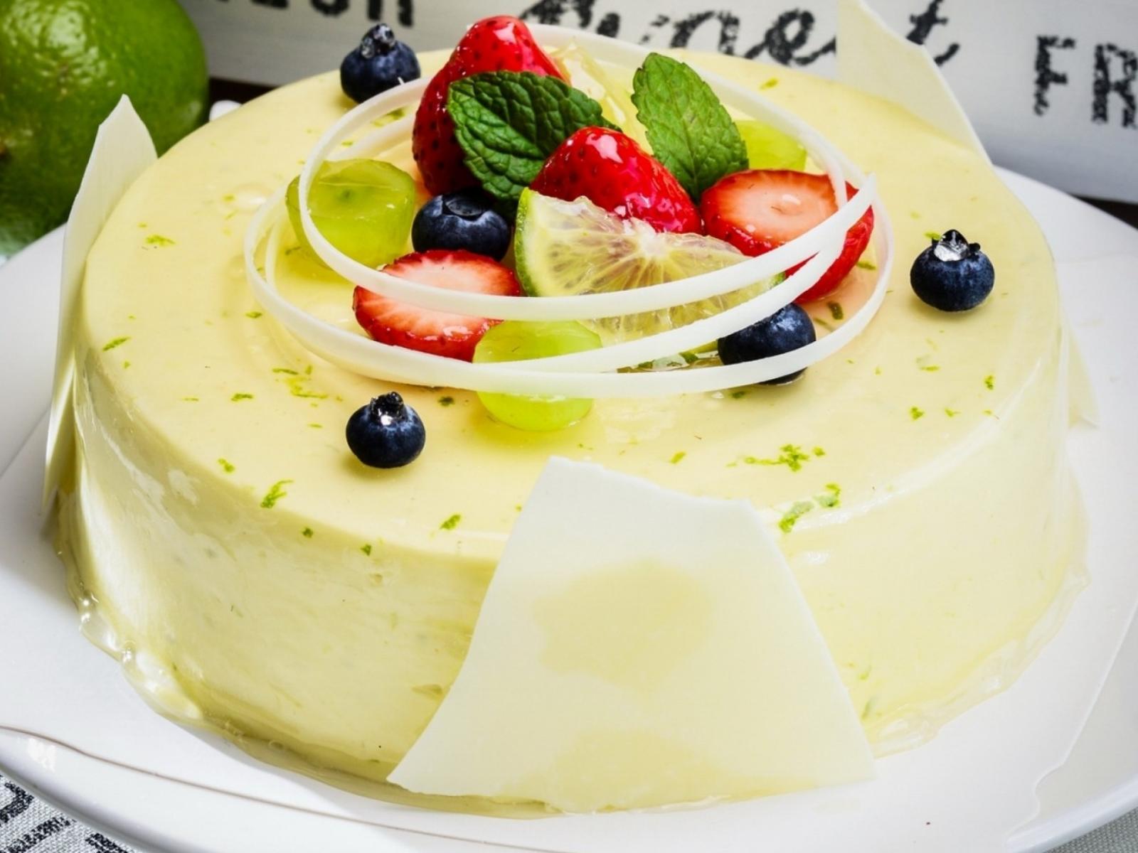 Обои Лимонный торт со свежими фруктами