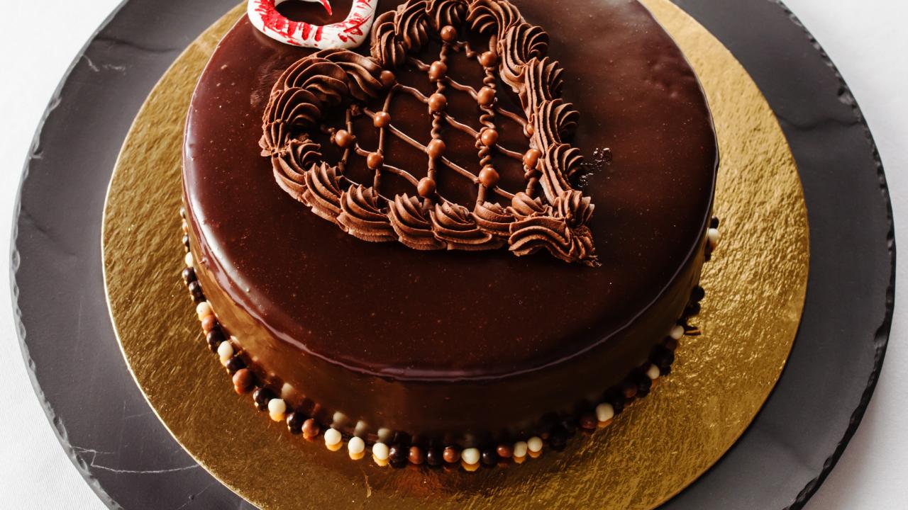 Обои Красивый праздничный торт с кремом, шоколадом и вишнями