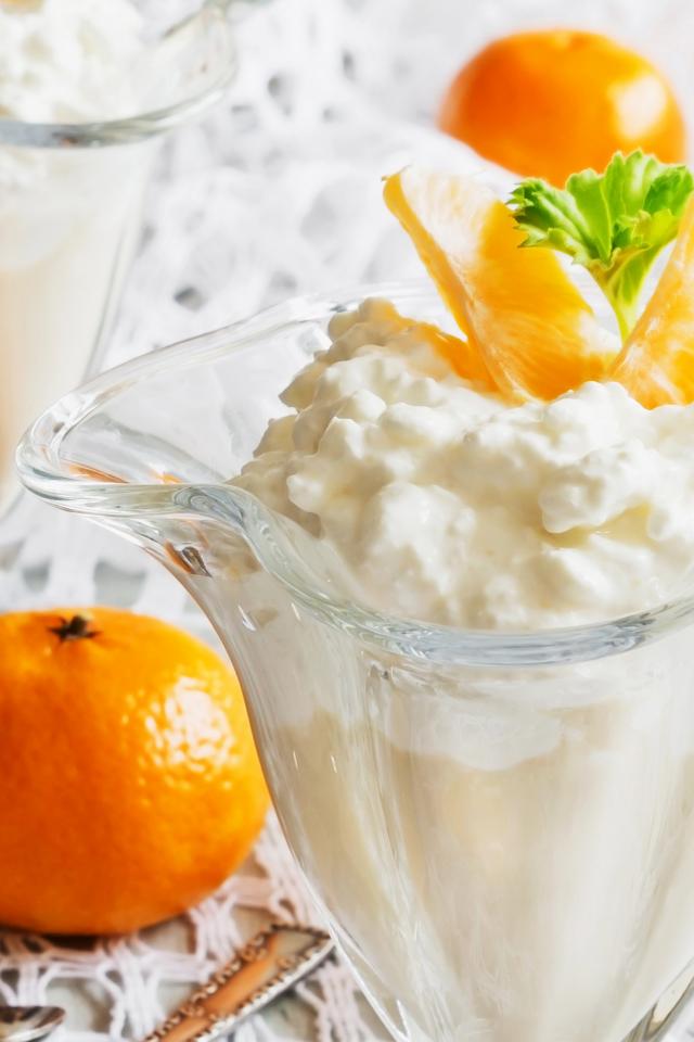 Обои Творожный десерт с мандаринами в креманке