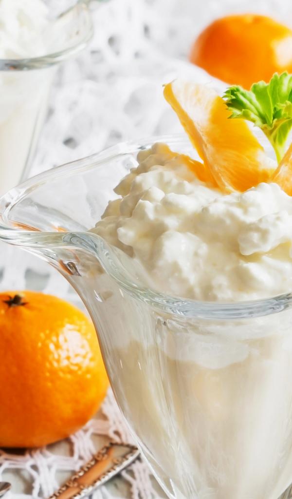 Обои Творожный десерт с мандаринами в креманке