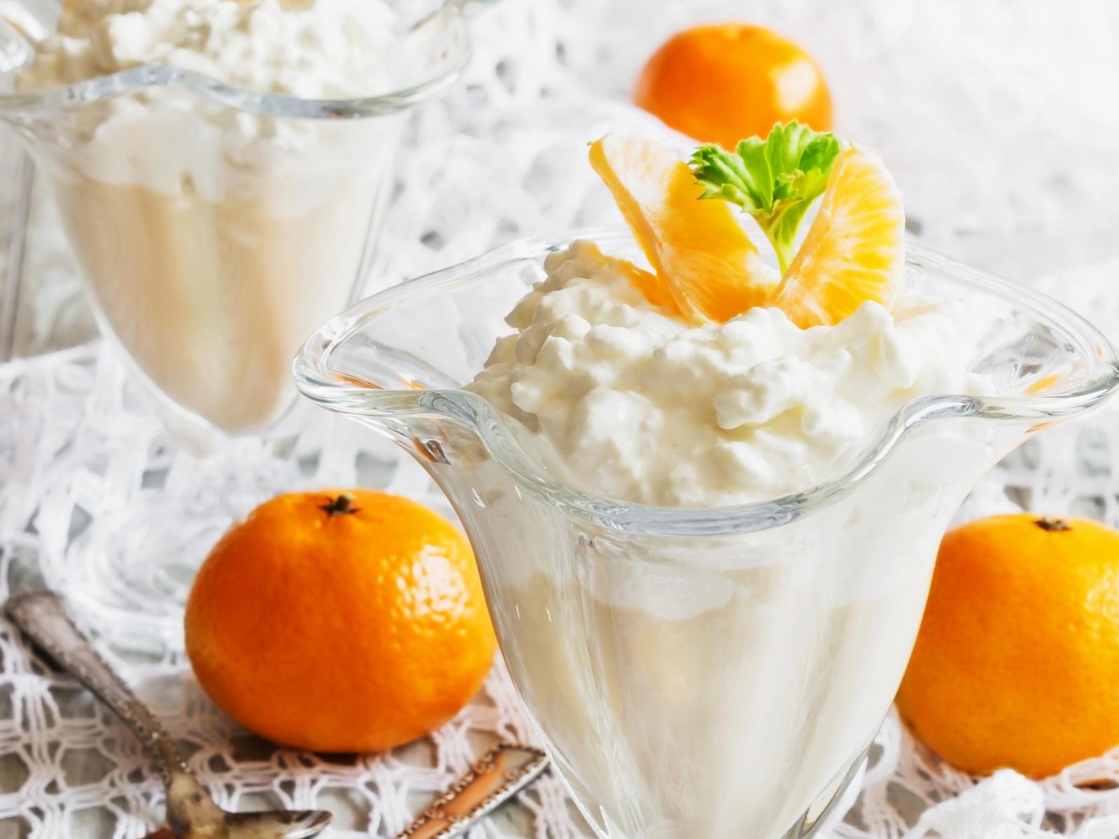 Обои Творожный десерт с мандаринами в креманке