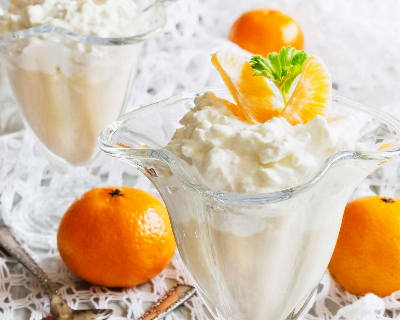 Обои Творожный десерт с мандаринами в креманке
