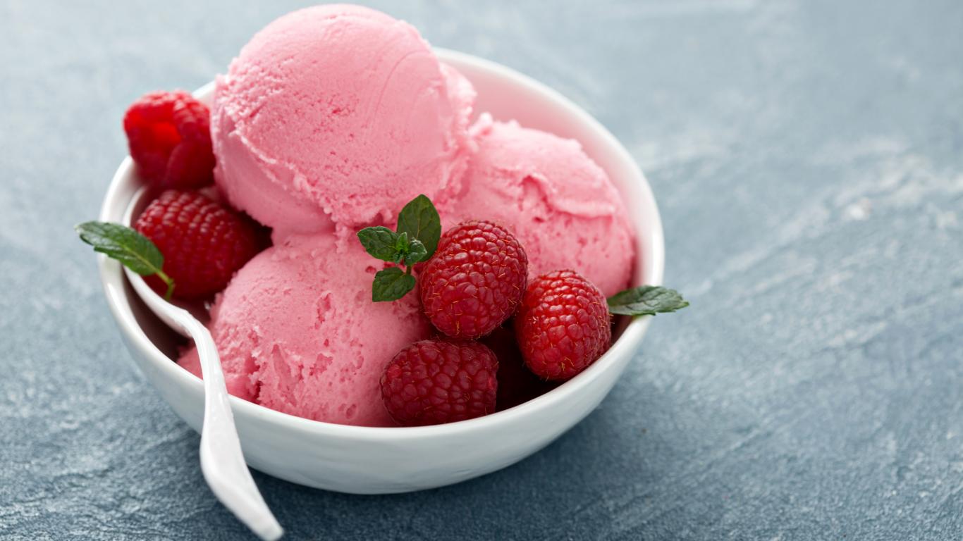 Обои Фруктовое розовое мороженое с малиной