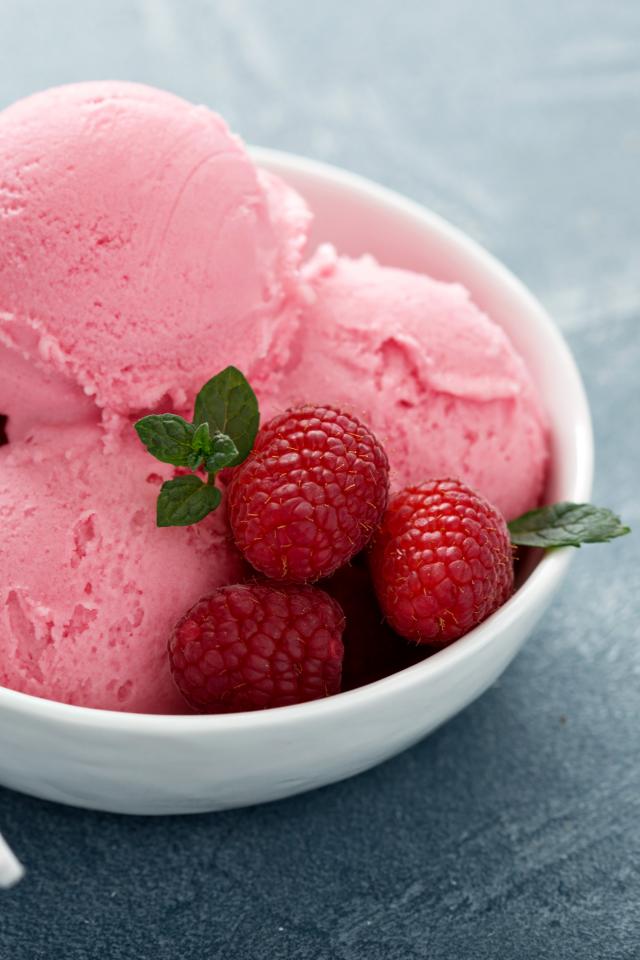 Обои Фруктовое розовое мороженое с малиной