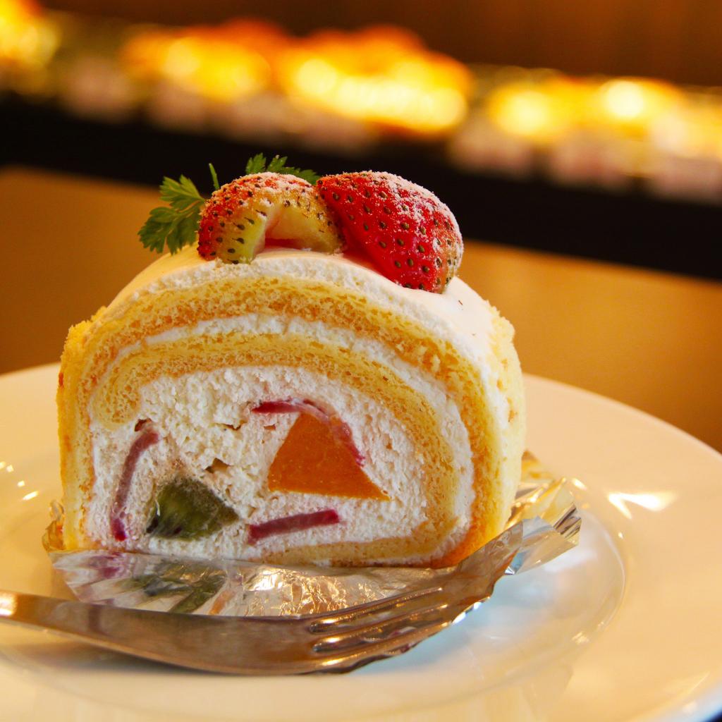 Обои Кусок сладкого бисквитного рулета с клубникой