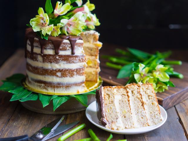 Обои Аппетитный торт с кремом и свежими цветами