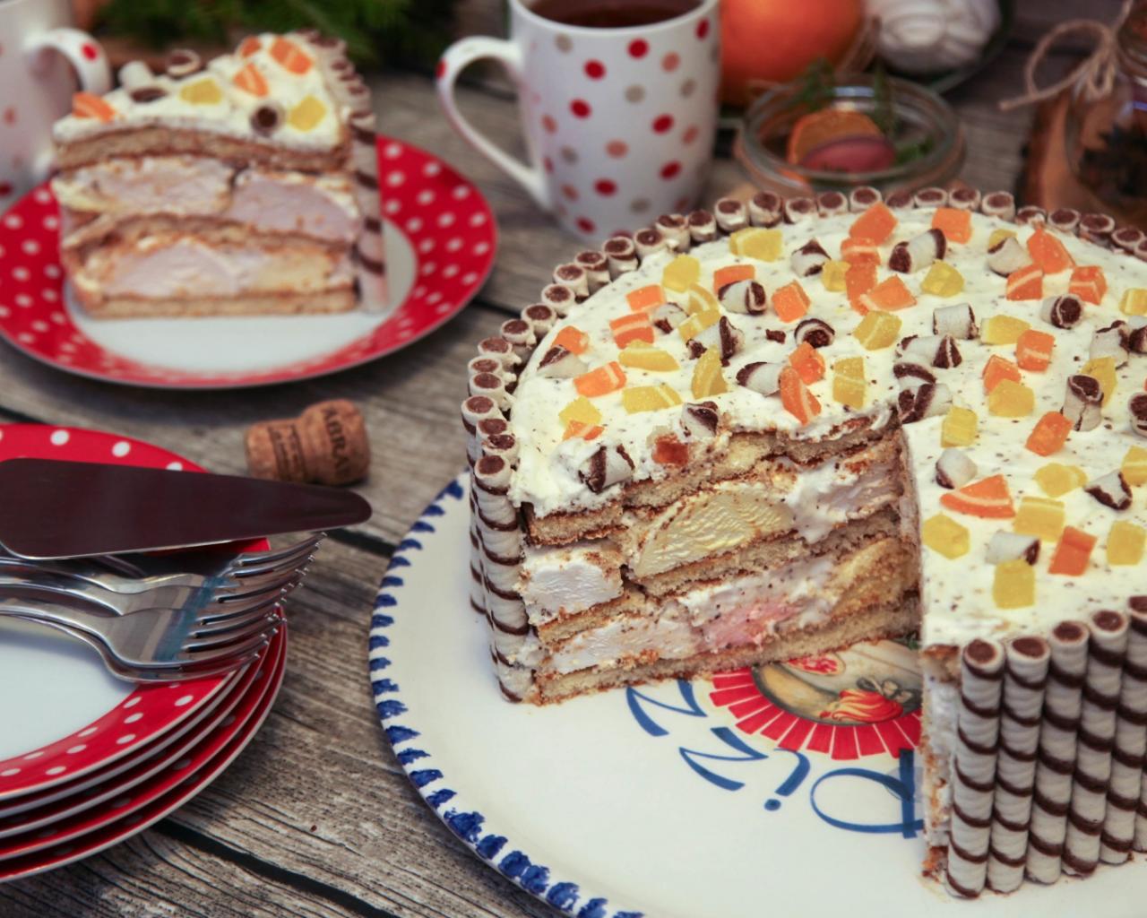 Обои Красивый зефирный торт на праздничном столе