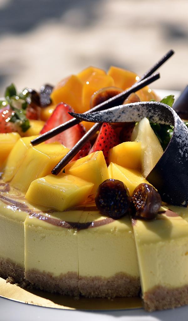 Обои Пирог с шоколадом и свежими ягодами малины и черники
