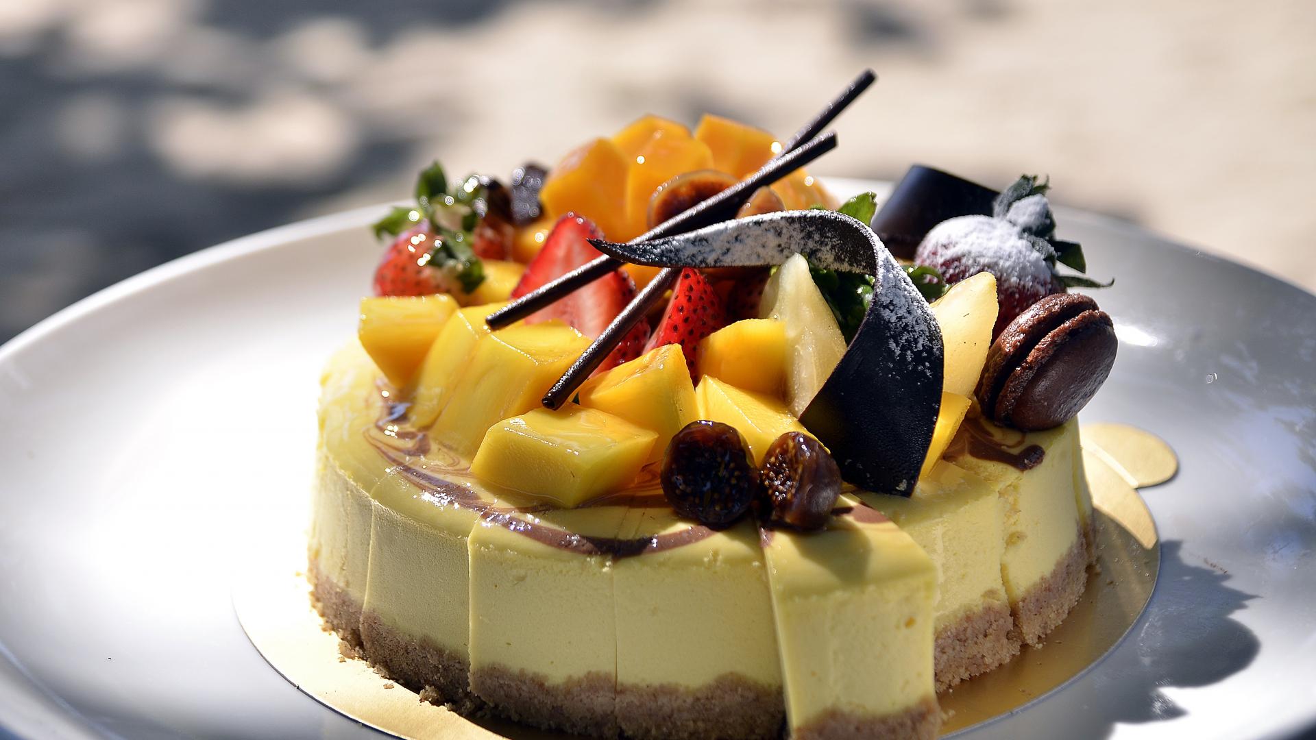 Обои Пирог с шоколадом и свежими ягодами малины и черники