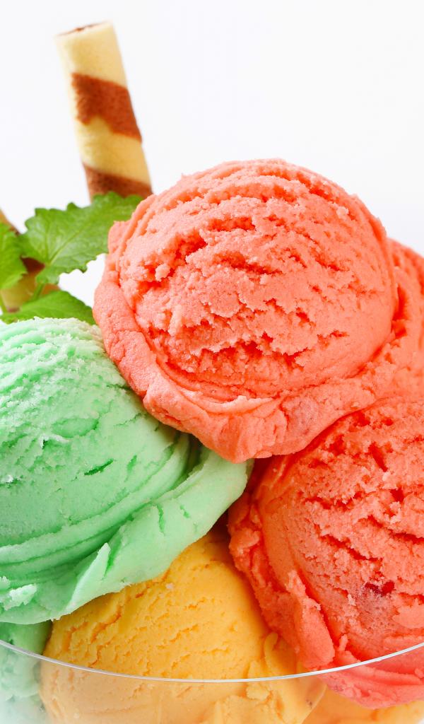 Обои Разноцветное фруктовое мороженое с ягодами лежит на кусочках льда