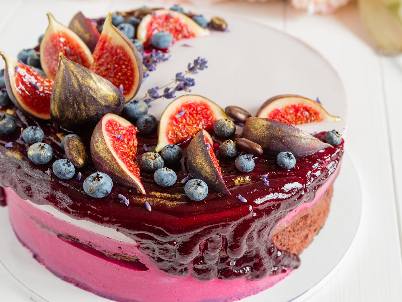 Обои Аппетитный фруктовый торт с инжиром и черникой
