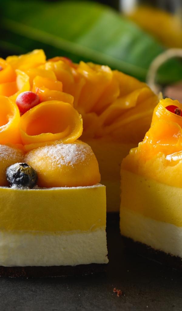 Обои Аппетитный праздничный торт с персиками