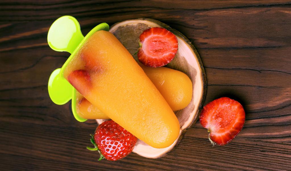Обои Фруктовое мороженое на палочке с клубникой
