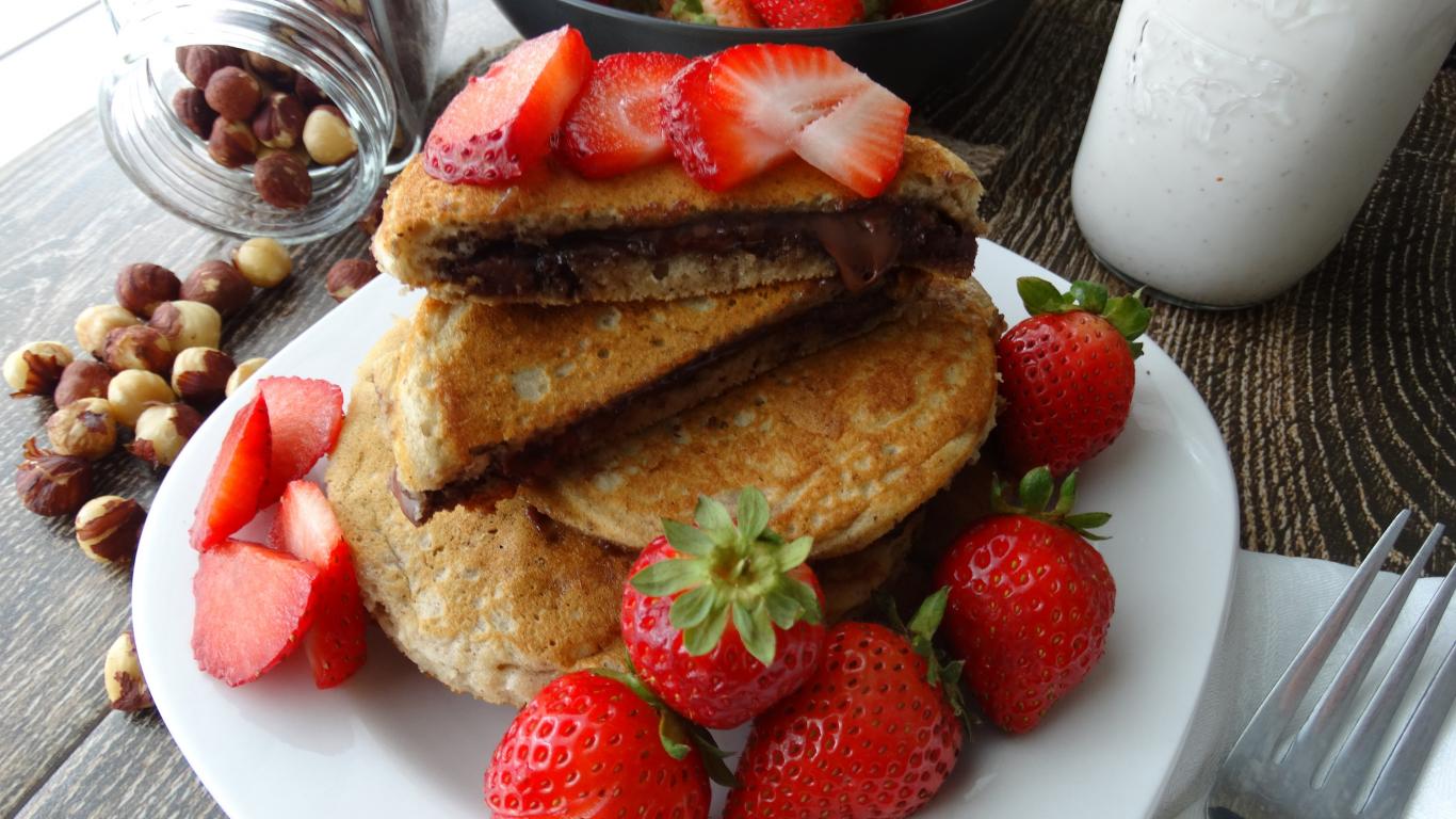 Обои Оладьи с шоколадом и свежей клубникой