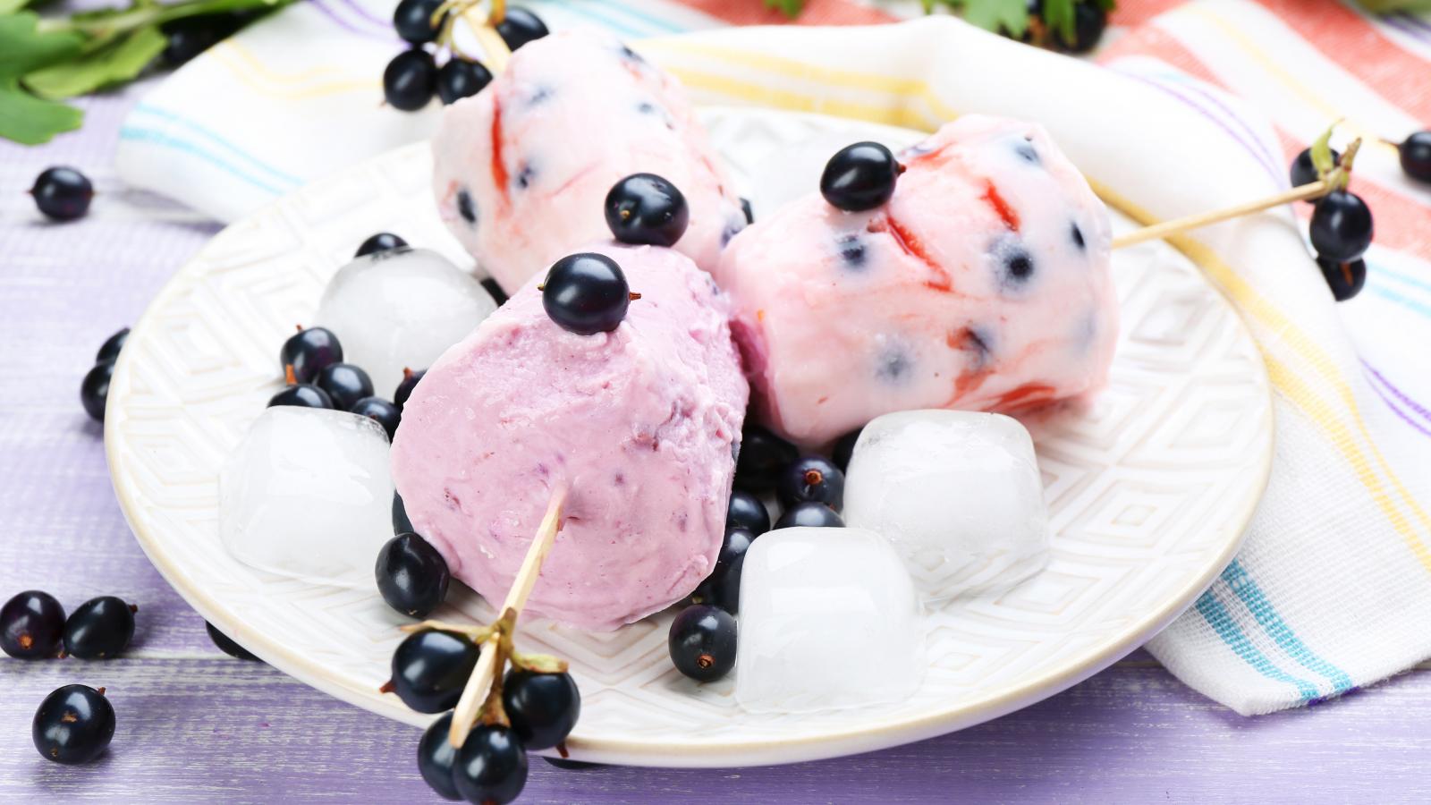 Обои Фруктовое мороженое с ягодами черной смородины