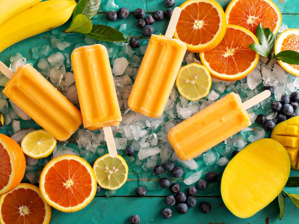 Обои Цитрусовое мороженое на палочке со свежими фруктами