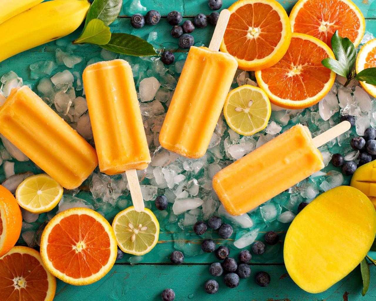 Обои Цитрусовое мороженое на палочке со свежими фруктами