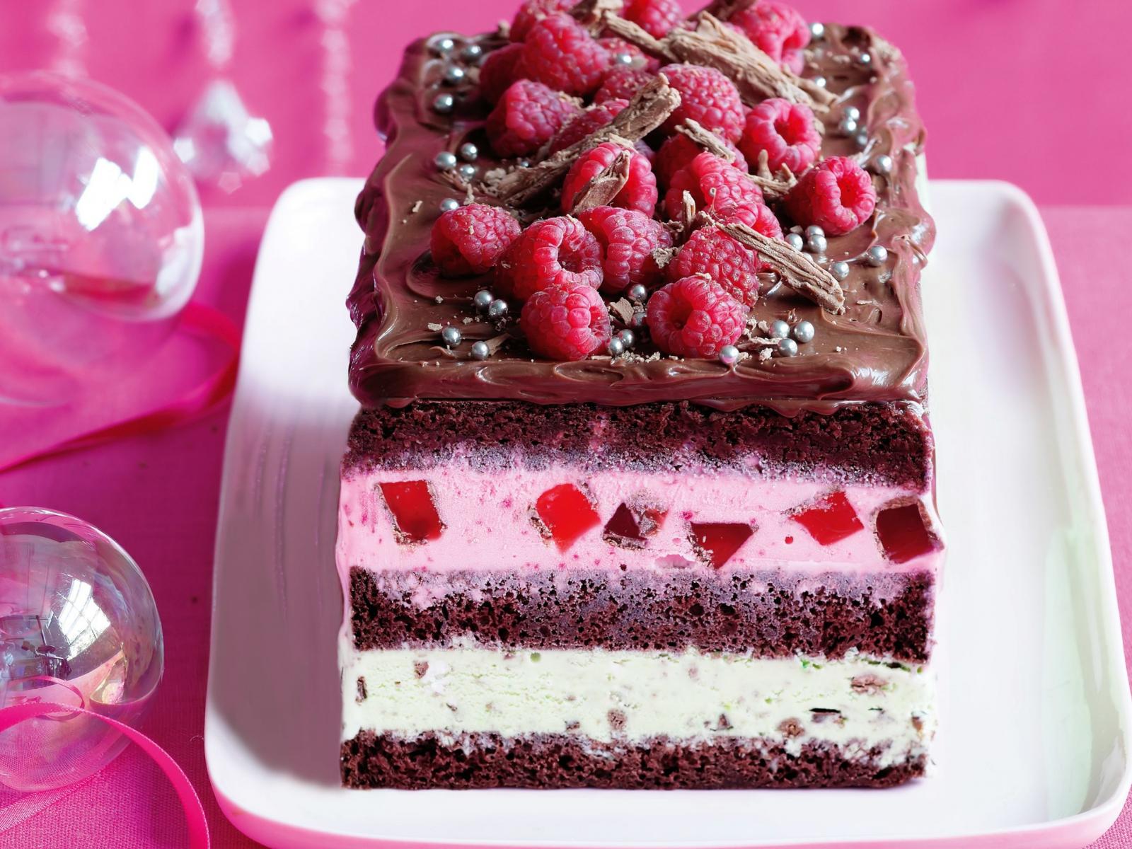Обои Аппетитный торт со свежей малиной и шоколадом