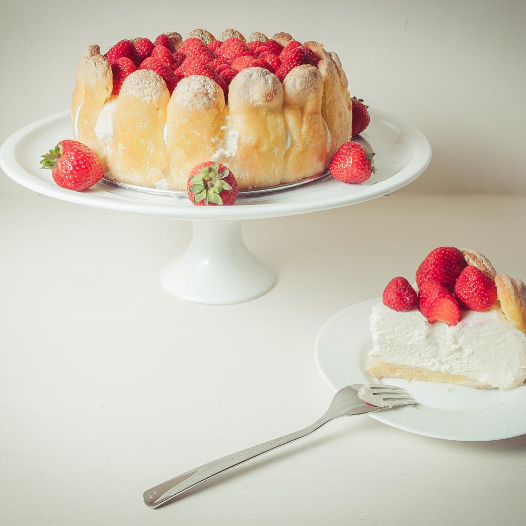 Обои Песочный пирог с ягодами клубники и сливками