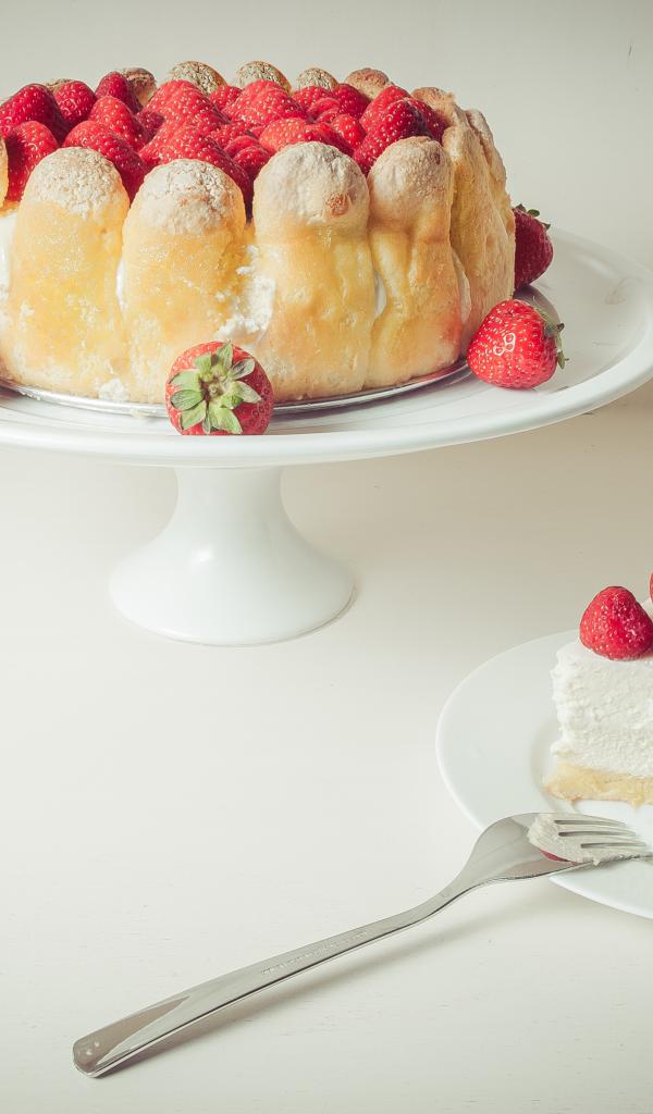 Обои Песочный пирог с ягодами клубники и сливками